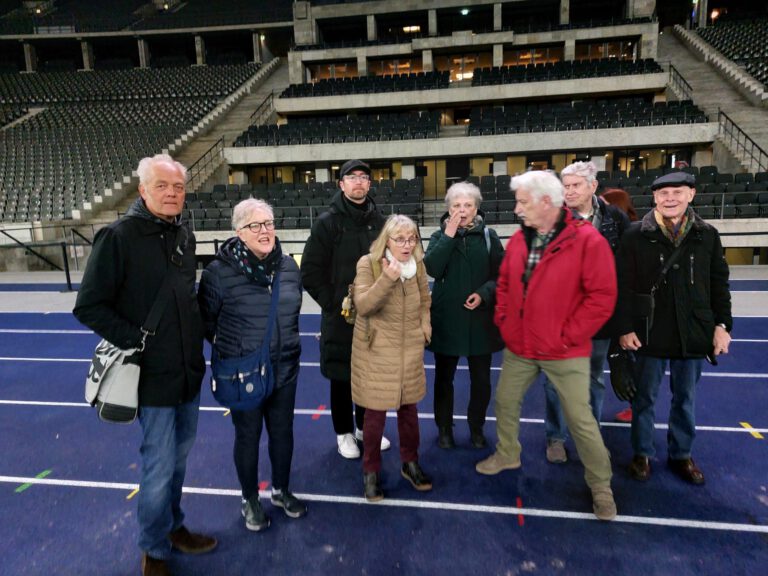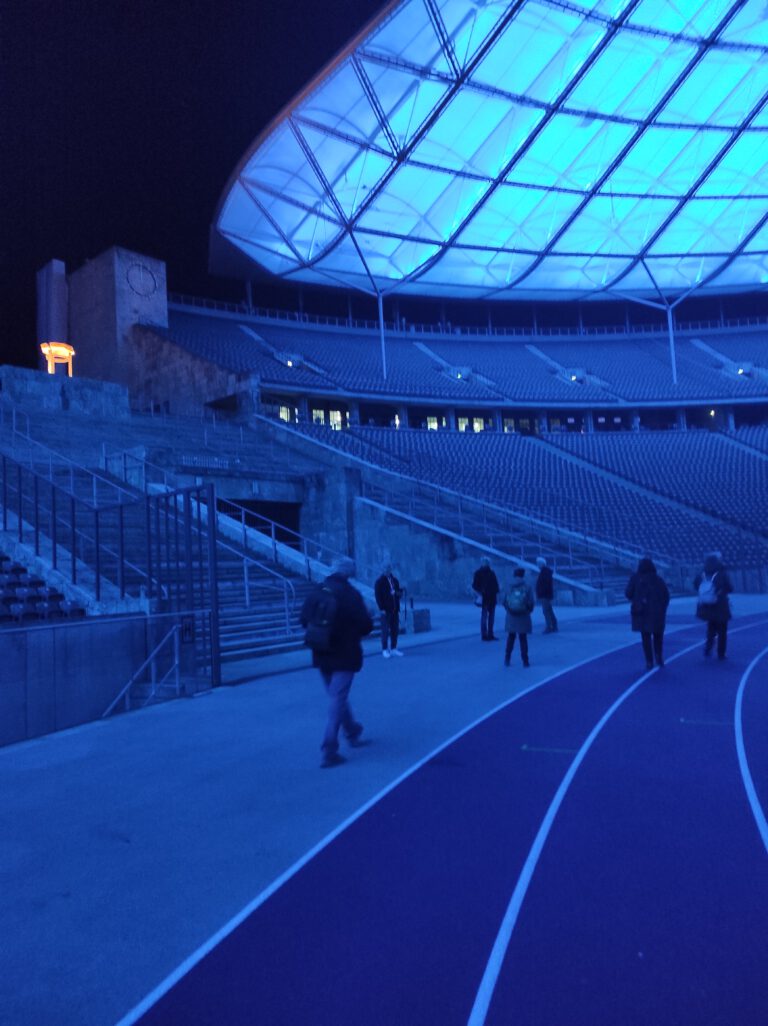Zwei Stunden, die wie im Flug vergingen, hatten wir das Olympiastadion für uns ganz allein. Zwölf VALer erlebten eine Show der besonderen Art mit den dazu gehörenden Erklärungen durch einen exzellenten Guide, der uns mit Charme und großen Kenntnissen diese Lichtanlage näherbrachte. Nebenbei erfuhren wir viele spannende Details über die  Geschichte des Stadions …..Vergangenheit,  Gegenwart und Zukunft.