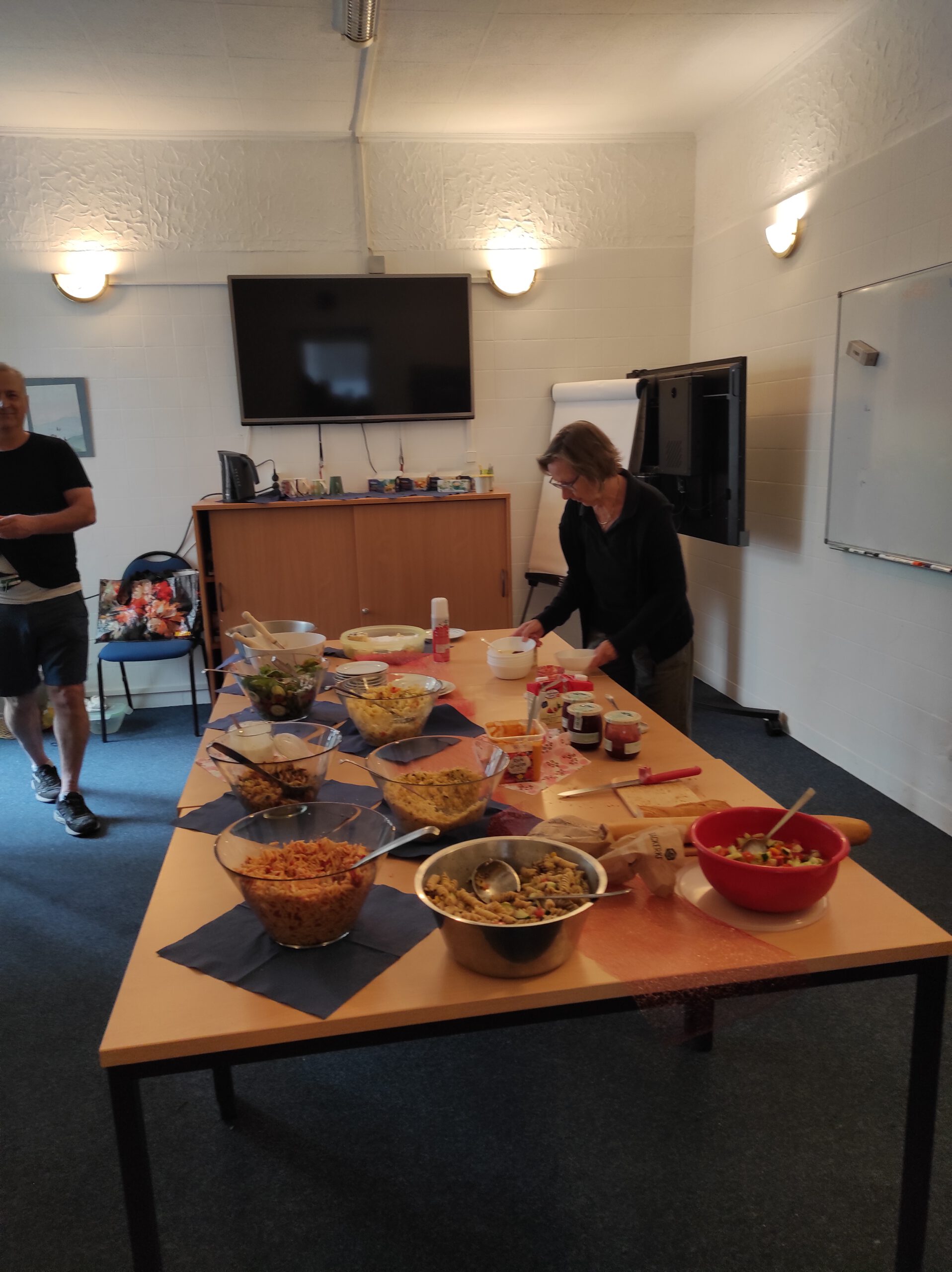 Bei unserem „Tag der offenen Tür“ füllten sich trotz regnerischem Wetter nach und nach die Tische. Viele treue Mitglieder und Gäste haben mit kreativen Salaten, feinen Kuchen und nicht zuletzt mit ihrer Anwesenheit dazu beigetragen, dass es ein gut besuchtes Fest war.