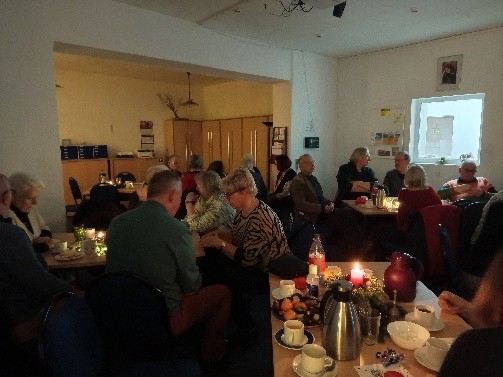 Am 6. Dezember fand unsere wieder gut besuchte Weihnachtsfeier statt. 55 Gruppenfreunde trafen sich zum gemütlichen Beisammensein bei Kaffee und Kuchen, zum regen Gedankenaustausch und Knüpfen neuer Kontakte. Auch trafen sich Personen aus den verschiedensten Gruppen an diesem Tag wieder, die sonst kaum Gelegenheit zu einem Gespräch haben, weil die Gruppen über die ganze Stadt verteilt sind. Die von den freiwilligen Helfern weihnachtlich dekorierten Räume trugen zu einer wunderschönen