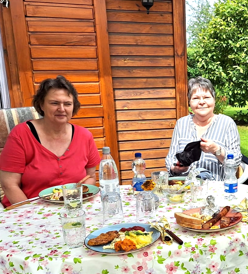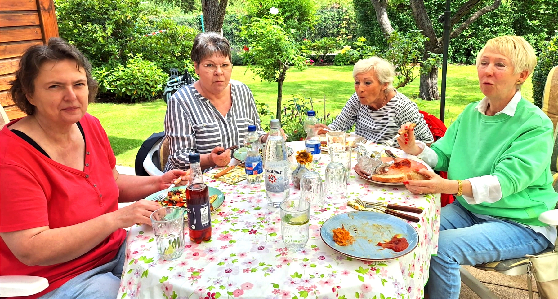 Bei mir im Garten fand wieder eine Grill-Party statt. Der Di- Frauenstamm und eine neue junge Frau sind gekommen.